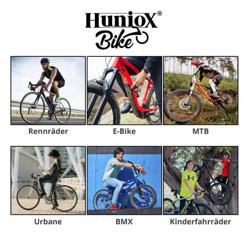 Huniox® Bike ist kompatibel für Straßen-, Triathlon-, Schotter-, Berg- oder MTB-, Stadt-, BMX- und Kinderfahrräder.